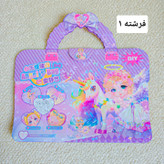 شامل ۴ صفحه برای تزئین لباس و اکسسوری و ۲ صفحه جهت چسبوندن چشم و گونه و ۴ برگه ۲رو که ۸ صفحه برای رنگ آمیزی و همچنین یک صفحه برچسب صورت که دخترهارو آرایش میکنید و یک صفحه پر از ناخن با ۲ صفحه دست وه ناخن هارو میچسبونید و خوشکل میکنید